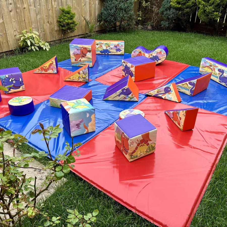 Our Dinosaur 17-Piece Soft Play Set is the perfect add-on for toddlers and young children who love to climb, crawl and explore. Bursting with bright dino-themed artwork and soft, safe shapes, this set creates an engaging play zone ideal for birthday parties, nurseries, christenings and indoor events.