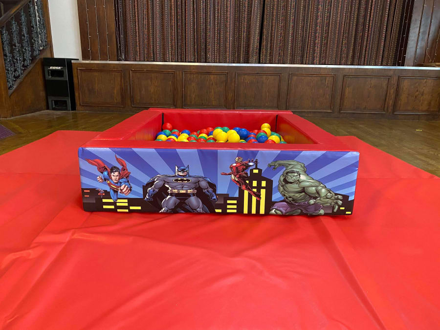 Featuring vibrant superhero artwork, themed foam shapes and interactive soft blocks, children can crawl, climb, build and play in a safe, padded environment. It pairs perfectly with our matching ball pools, toddler inflatables and other soft play extras.
