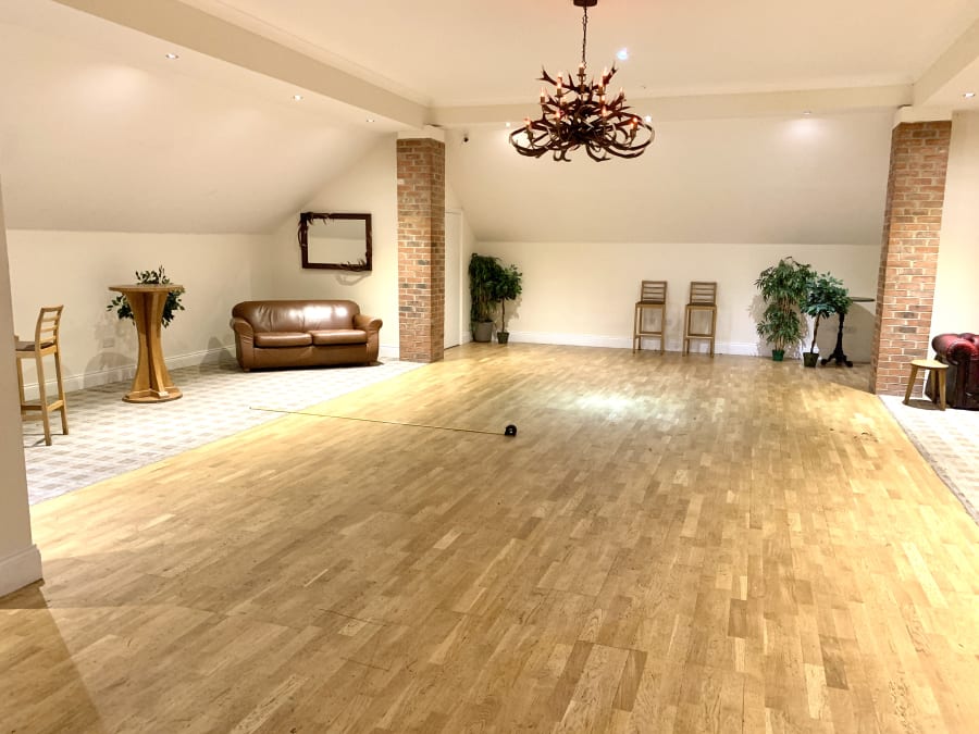 Please be aware that the function room features chandeliers that hang in the centre of the dancefloor. This reduces the available height to around 7 ft (2.13 m) once you move away from the back wall. Some taller inflatables may not be suitable in certain positions, so we recommend checking with us before booking.