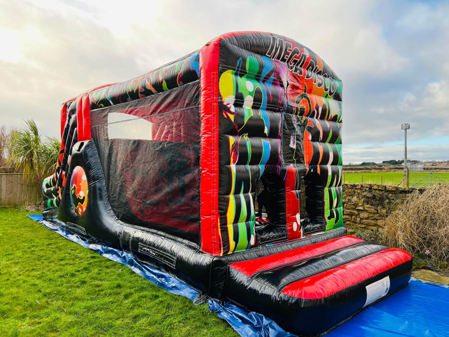A spectacular 10ft platform vertical drop slide with eye-catching disco/party artwork and reinforced stabilizers for improved safety indoors or outdoors. A huge crowd-drawer and one of the most impressive slides in our fleet.