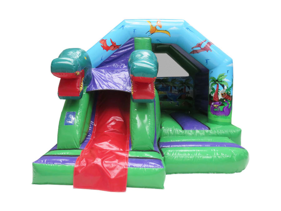 A popular bounce-and-slide inflatable featuring vibrant dinosaur artwork, 3D dino heads and an attached slide. Compact at 12ft x 15ft x 9.5ft, it fits most gardens and halls while offering plenty of excitement. Great for ages 3–10 and ideal for spreading out activity zones to keep children entertained and supervised safely.