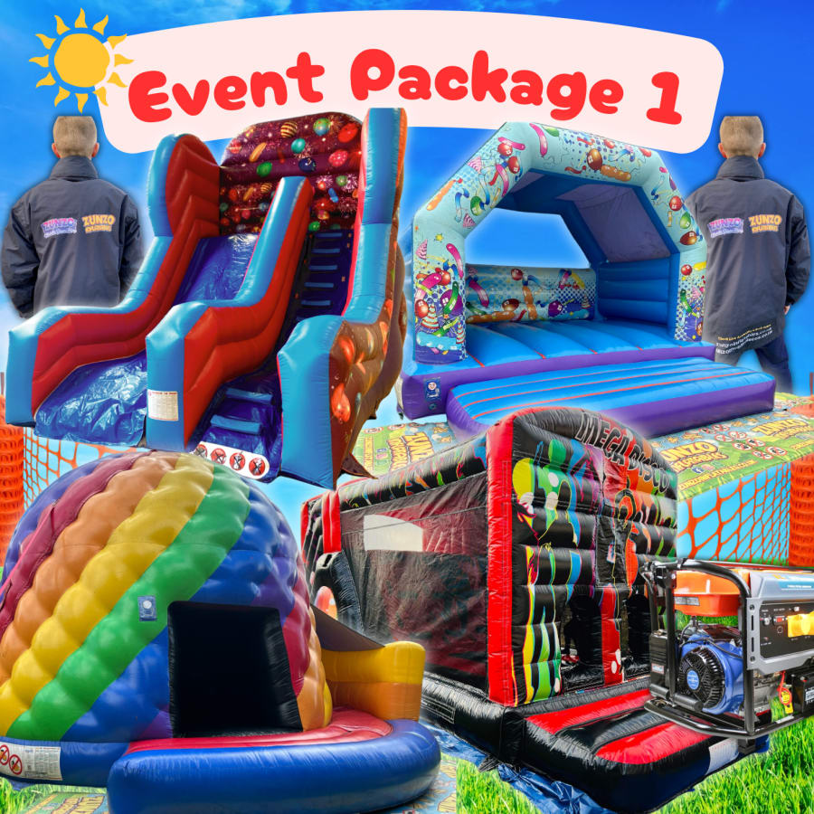 Our Event Package 1 is the ultimate all-in-one solution for large fun days, school events, charity fundraisers and community celebrations. Designed to handle big crowds and high-energy activity, this premium package includes six top-performing inflatables and services — everything you need for a smooth, exciting and fully supervised event.
